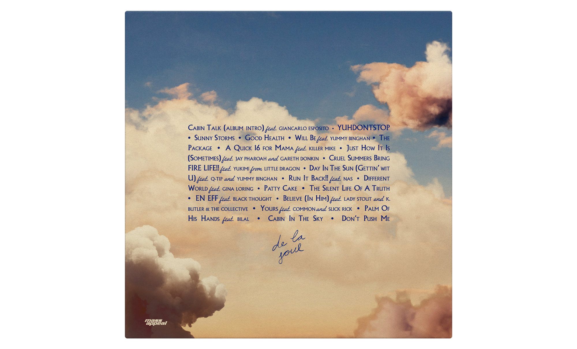 De La Soul return with ‘Cabin In The Sky’ their 10th LP. The new album also stands as the latest release in Mass Appeal’s celebrated “Legend Has It” series.