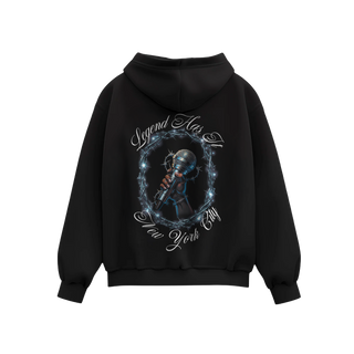 Left chest puff print graphic with silver foil + "Legend Has It" back print